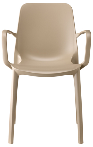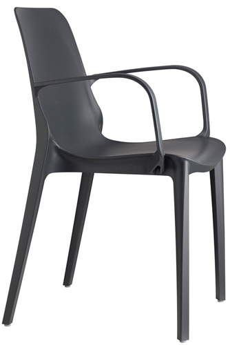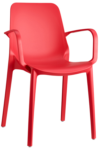 Cadeira empilhável adequada para o uso no exterior.